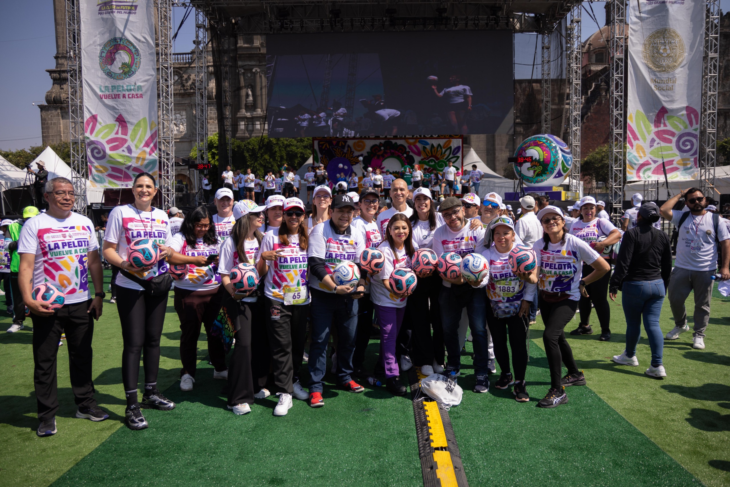 Con la participación histórica de más de 9 mil 500 personas, y en medio de un ambiente festivo y de paz, México batió el Récord Guinness al realizar en la Plaza de la Constitución la clase de fútbol más grande del mundo, como parte de las actividades de promoción para llevar a cabo un Mundial social rumbo a la celebración de la Copa de Futbol FIFA 2026.